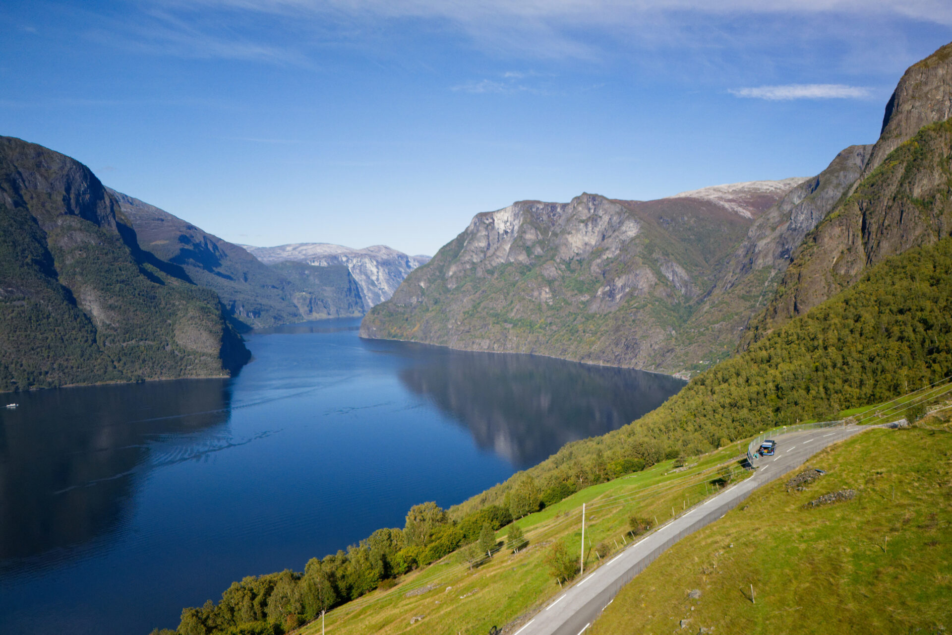 Nördlich von Flåm kann man die E16 verlassen und über den Gamle Aurlandsvegen reisen. Dieser belohnt einen mit imposanten Ausichtsspunkten und einer herrlichen Fjellandschaft.