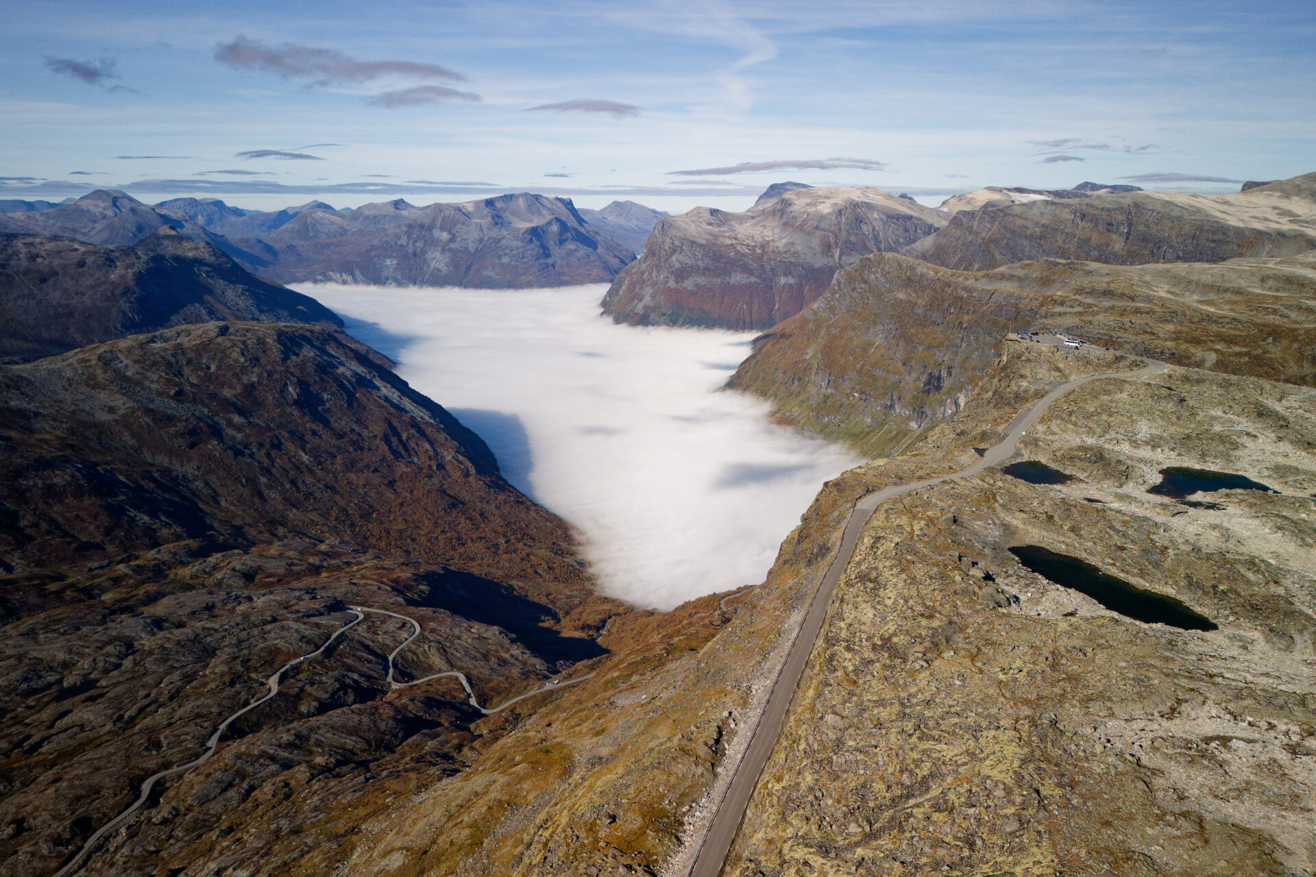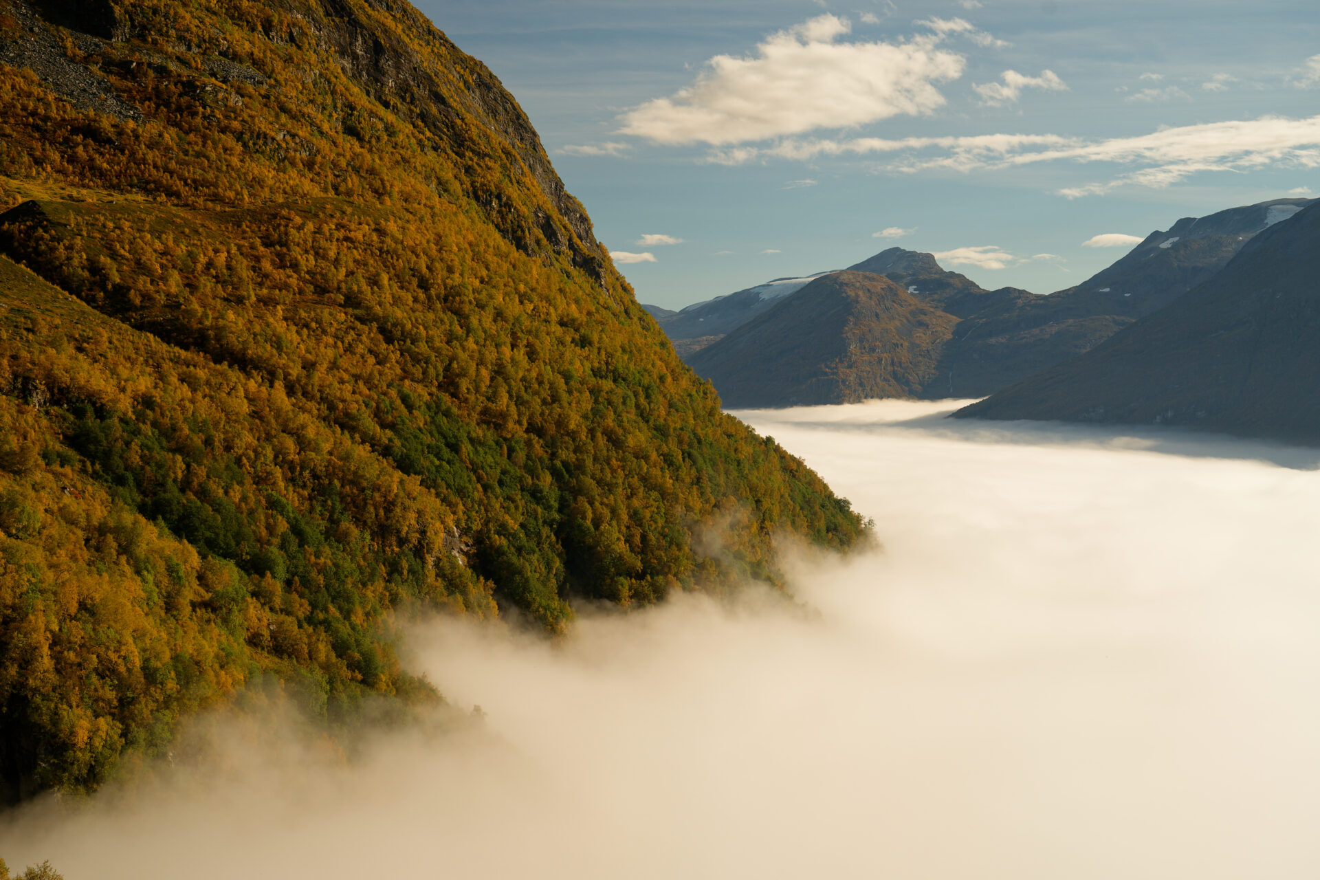 Der Weitere Tourverlauf führte uns vorbei an Dalsnibba und dem berühmten Geiranger Fjord. Letzteres ist unter anderem bekannt durch den Wasserfall „Die sieben Schwestern“. Leider lag über den Fjord eine dichte Nebelwand, welche aber dennoch für atmosphärische Aufnahmen sorgte.