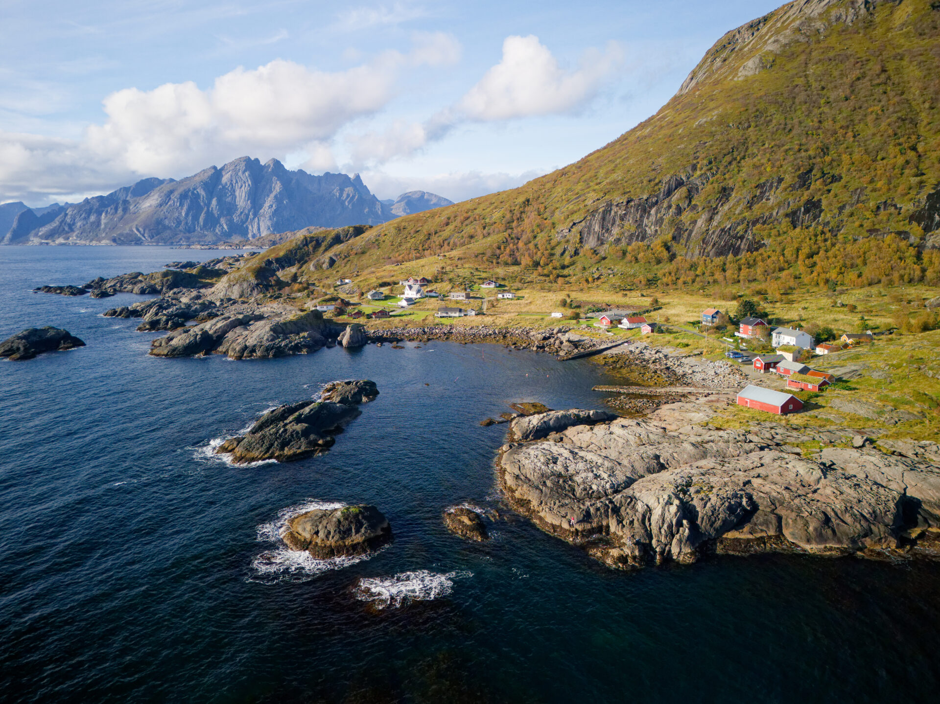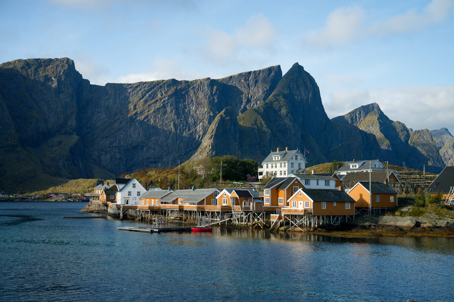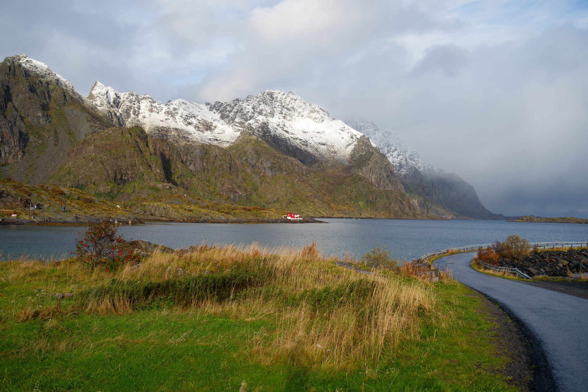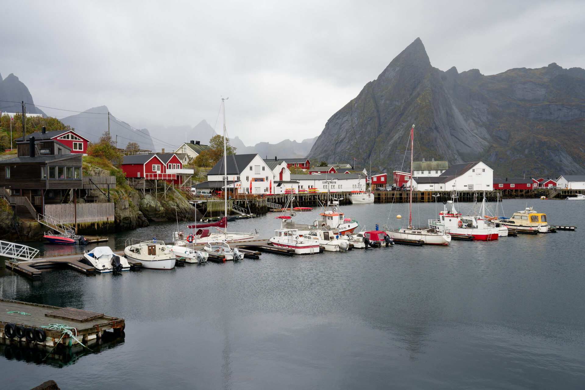 Reine ist eingebettet zwischen steil aufragenden Granitbergen und dem tiefblauen Reinefjord. Das kleine Fischerdorf wie eine perfekte Mischung aus Naturkunstwerk und nordischem Märchen. Die roten Fischerhütten – Rorbuer genannt – kleben wie Farbtupfer am Wasser, während im Hintergrund Gipfel wie der Reinebringen die Szenerie dramatisch einrahmen. Als wir vor Ort waren, war der Wanderweg zum Reinebringen leider stark beschädigt, daher zogen wir weiter nach Nesland, aber nicht ohne einige fantastische Highlights mitzunehmen.