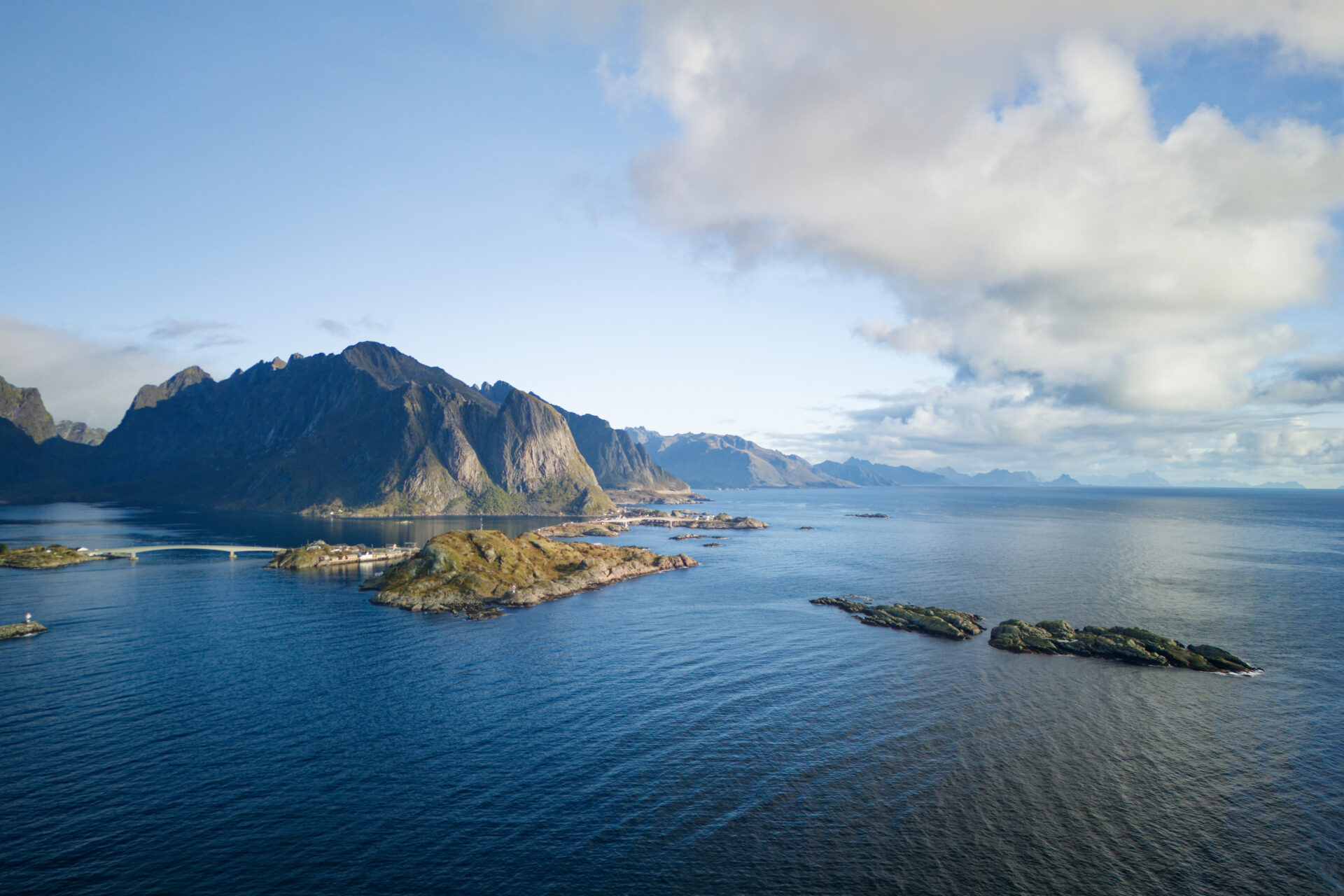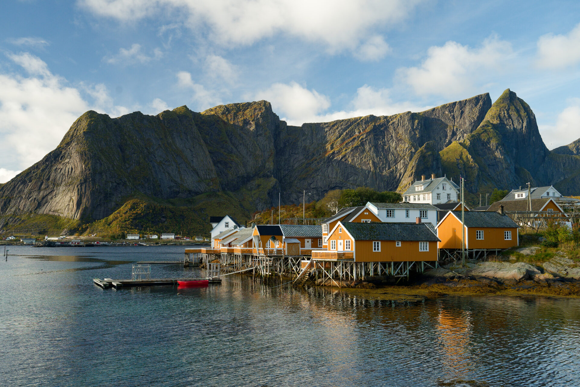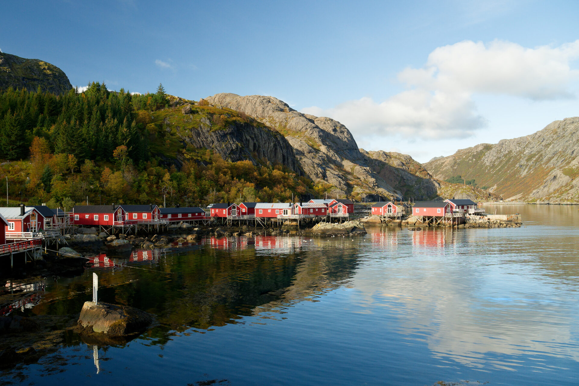 Reine ist eingebettet zwischen steil aufragenden Granitbergen und dem tiefblauen Reinefjord. Das kleine Fischerdorf wie eine perfekte Mischung aus Naturkunstwerk und nordischem Märchen. Die roten Fischerhütten – Rorbuer genannt – kleben wie Farbtupfer am Wasser, während im Hintergrund Gipfel wie der Reinebringen die Szenerie dramatisch einrahmen. Als wir vor Ort waren, war der Wanderweg zum Reinebringen leider stark beschädigt, daher zogen wir weiter nach Nesland, aber nicht ohne einige fantastische Highlights mitzunehmen.