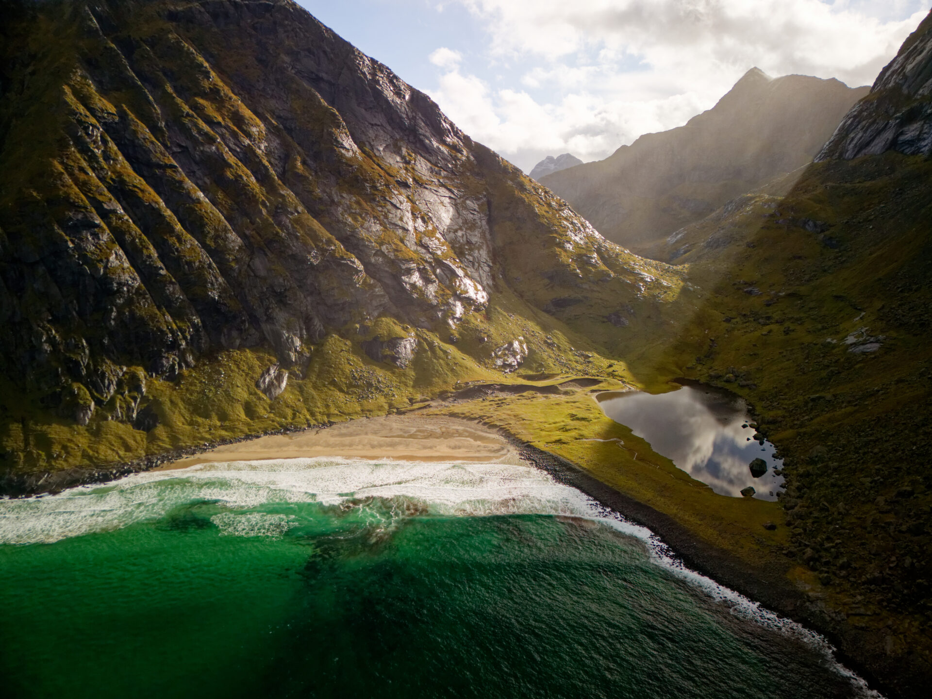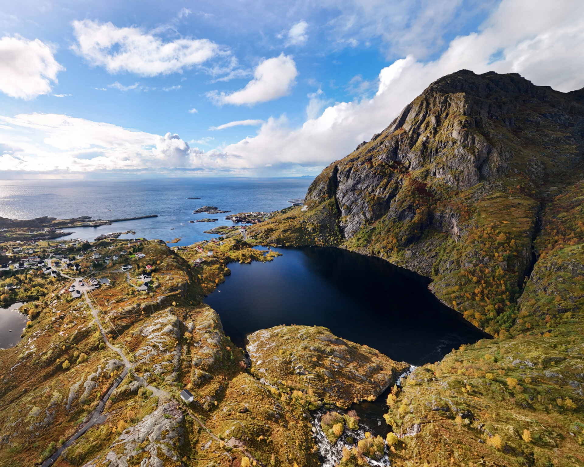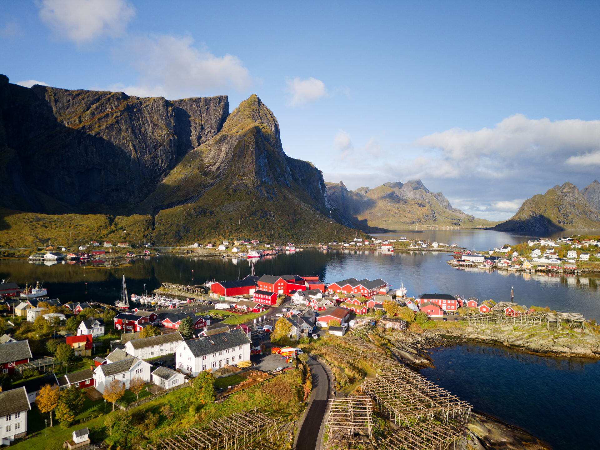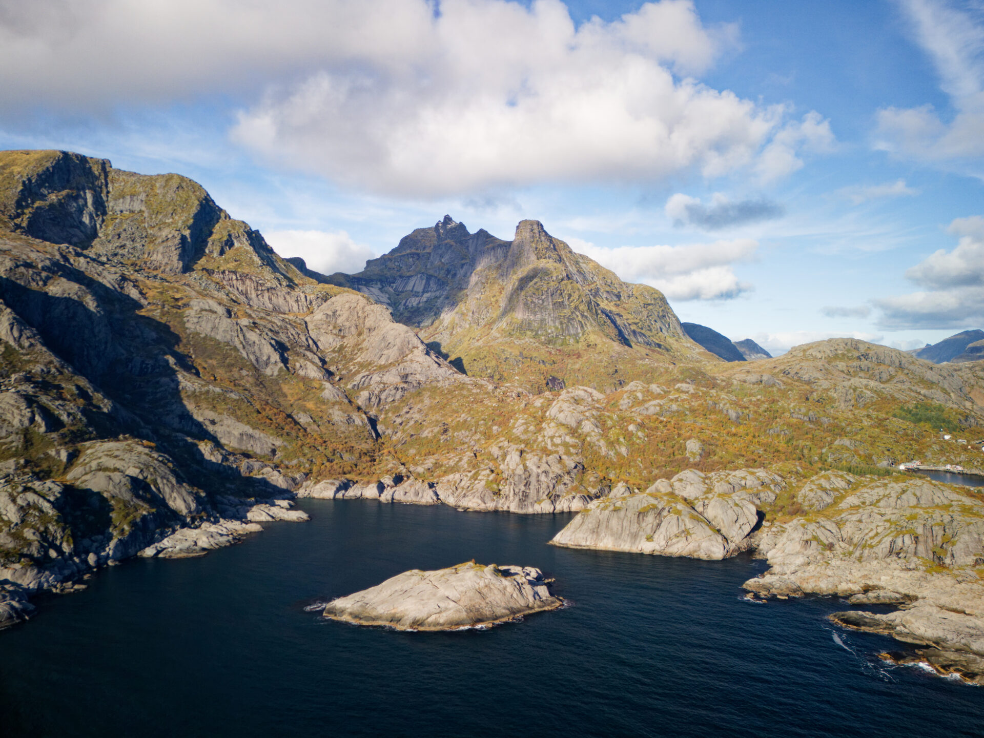 Reine ist eingebettet zwischen steil aufragenden Granitbergen und dem tiefblauen Reinefjord. Das kleine Fischerdorf wie eine perfekte Mischung aus Naturkunstwerk und nordischem Märchen. Die roten Fischerhütten – Rorbuer genannt – kleben wie Farbtupfer am Wasser, während im Hintergrund Gipfel wie der Reinebringen die Szenerie dramatisch einrahmen. Als wir vor Ort waren, war der Wanderweg zum Reinebringen leider stark beschädigt, daher zogen wir weiter nach Nesland, aber nicht ohne einige fantastische Highlights mitzunehmen.