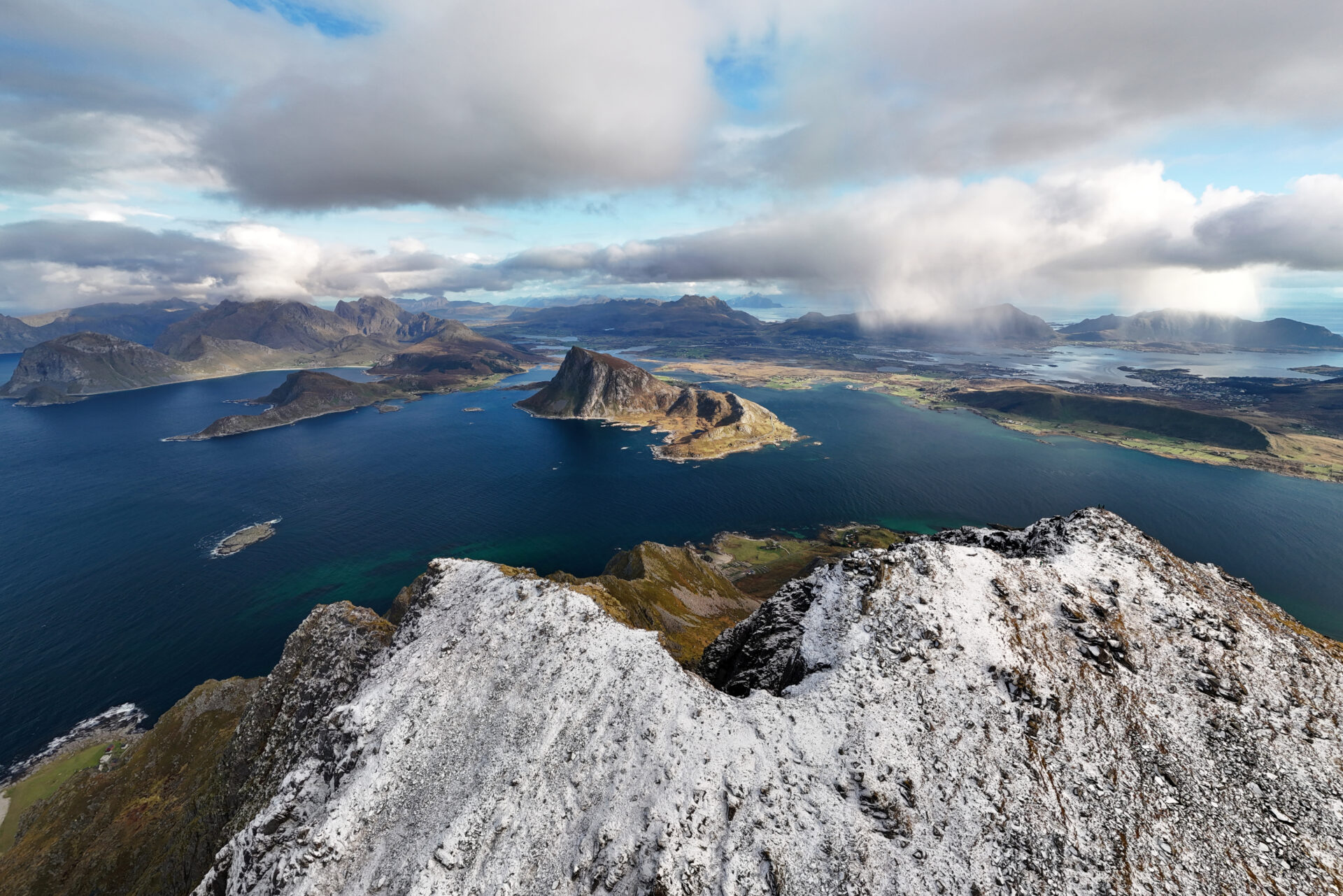 Mit 738 Metern ist der Stornappstinden kein Riese, aber er hat etwas, das selbst höhere Gipfel neidisch macht: eine 360°-Aussicht über türkisfarbene Buchten, zerklüftete Bergketten und die endlose Weite des Nordmeers. Unser Weg begann am Nappskaret-Pass und führt steil, aber lohnend, über Wiesen und Felsgrate hinauf. Oben angekommen, eröffnete sich uns eien traumhafte Ausicht auf die Welt der Lofoten.