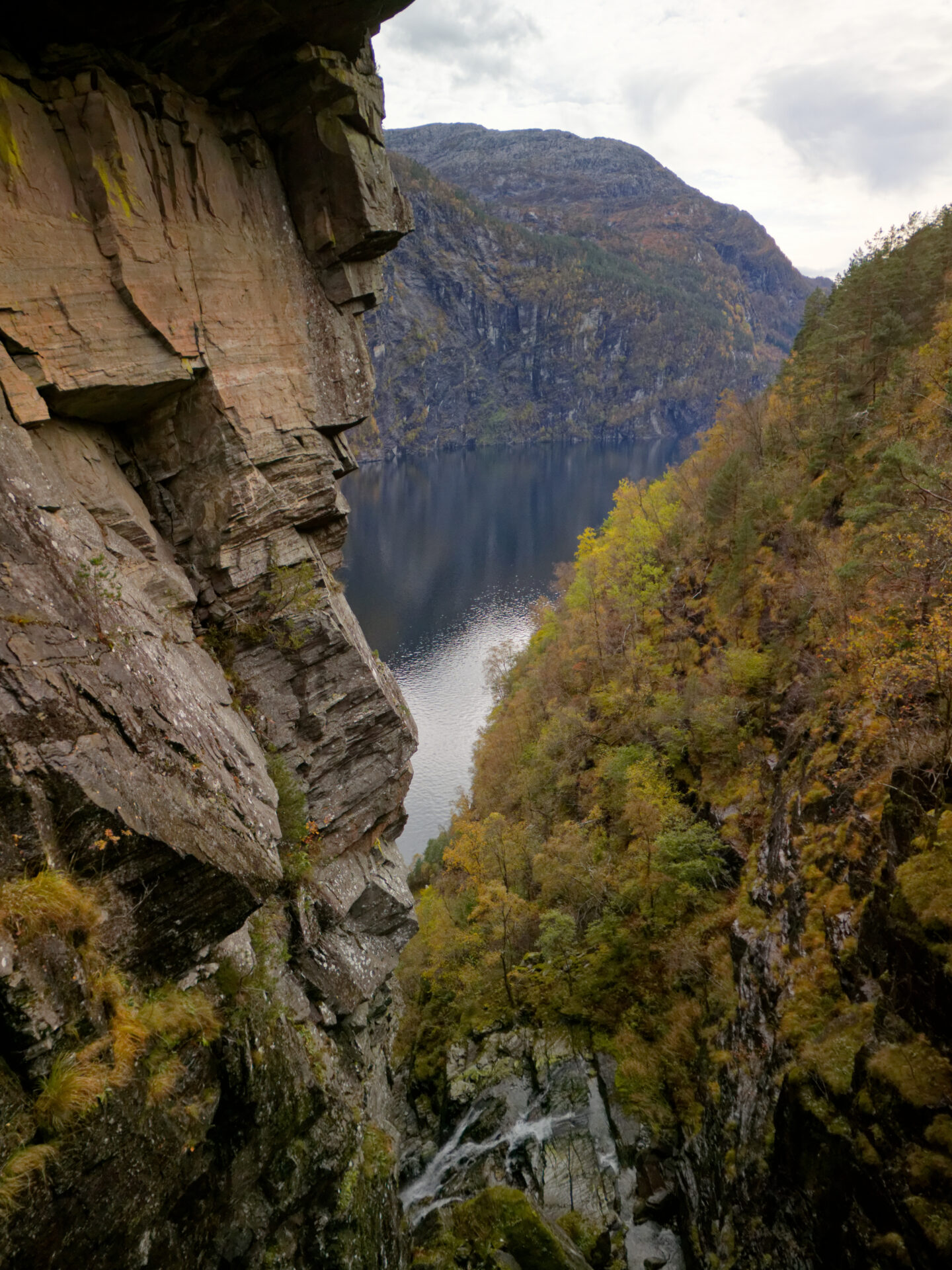 Nur etwa 1,5 Stunden von Bergen entfernt, wartet in der winzigen Gemeinde Modalen ein letztes HIghlight: Slottet, eine Felsformation, die sich steil 200 Meter über den Mofjord erhebt. Dies war einer der letzten Highlights unseres Abenteuers in Norwegen, eh wir in Bergen wieder in die Fähre steigen.